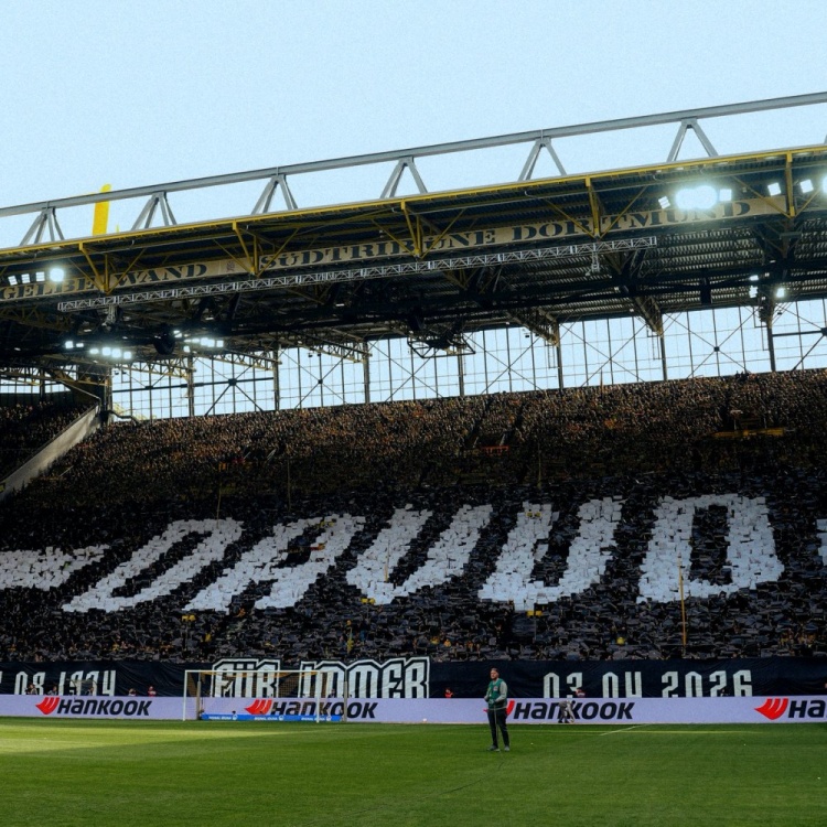 在对阵勒沃库森的比赛之前,多特南看台球迷展示TIFO,致敬已故的多特俱乐部工作人员达乌德·穆罕默德。